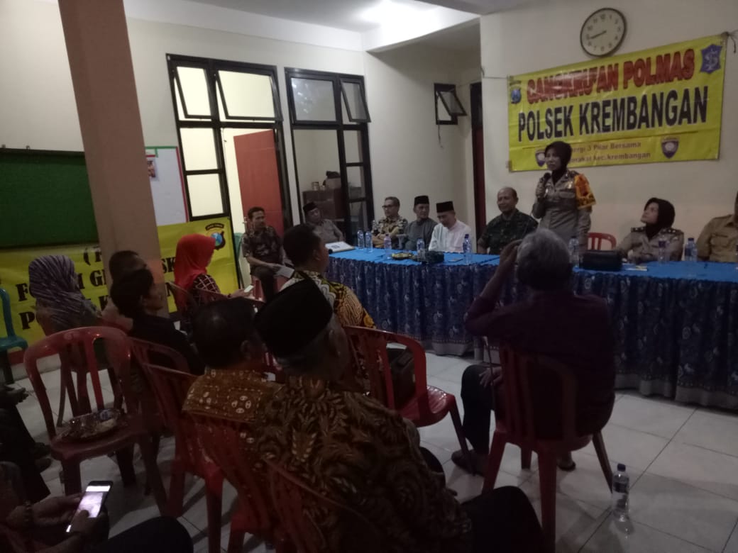 SUARA BANUA NEWS.COM,SURABAYA- Kepala Kepolisian Sektor Krembangan Kompol Esti Setija menggelar Cangkrukan Kamtibmas tiga Pilar di balai RW. 04, kelurahan Dupak, Kecamatan Krembangan, Surabaya, Senin (22/10/2018).