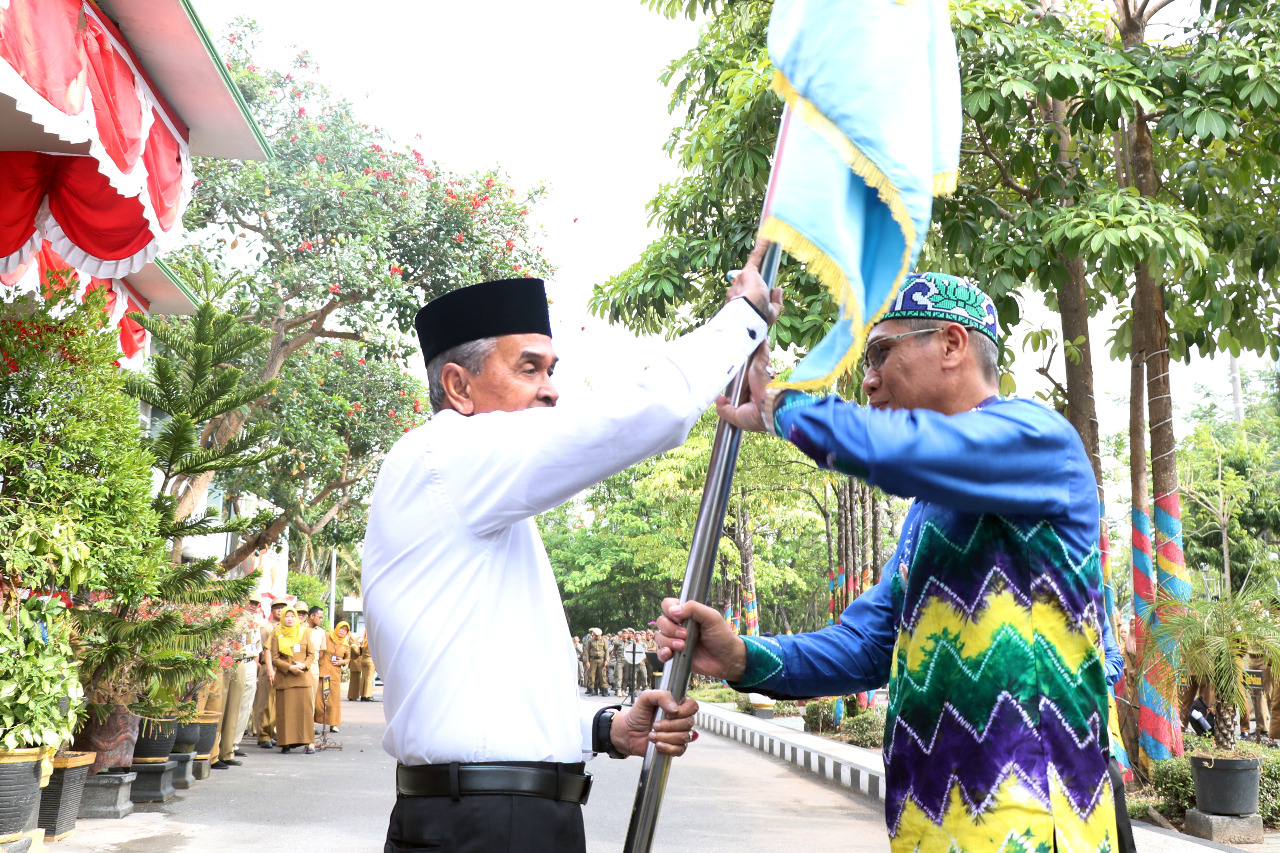 DALAM acara pelepasan yang berlangsung di halaman kantor Pemkab Banjar itu, Bupati Banjar H Khalilurrahman, juga menyerahkan Bendera Lembaga Pengembangan Tilawatil Qur’an Banjar kepada pendamping rombongan atau kafilah, serta bantuan oprasional kegiatan LPTQ Banjar sebesar Rp50 juta dari Kementerian Agama Kabupaten Banjar.