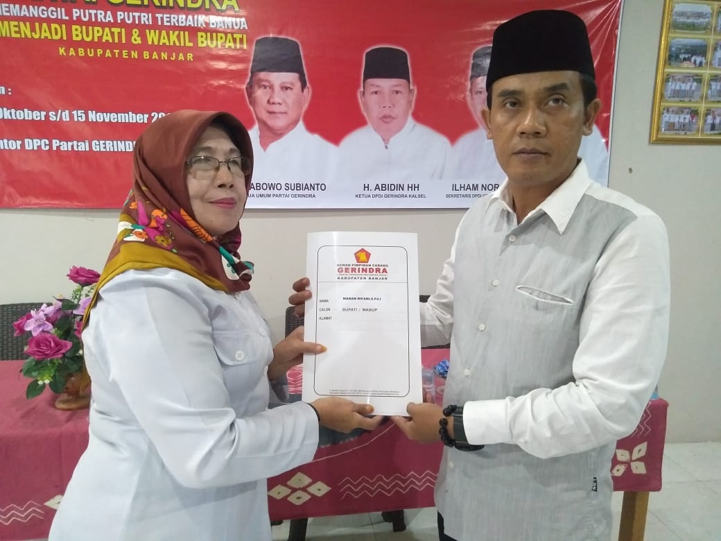 “sebelum sekretaris partai gerindra banjar manan rifani, pada Rabu 13 November ada Wakil Bupati Banjar Saidi Mansyur dan kader Golkar Gusti Iskandar yang mendaftar,” bebernya.
