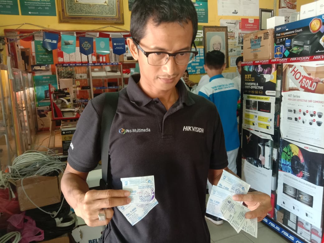 AGUNG WIBISONO, salah satu pedagang elektronik  mengaku resah dengan adanya sejumlah karcia pungutan ketertiban Rp.1000 sebanyak 4  rangkap serta biaya  untuk kebersihan sebesar Rp.2000 , 2 lembar dalam sehari.