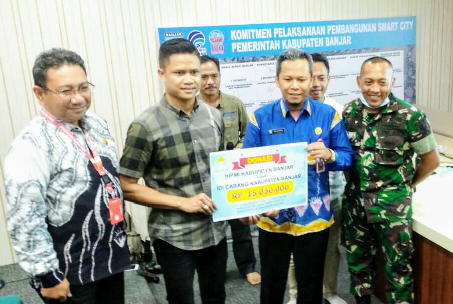 Bantuan donasi berupa uang tunai tersebut diserahkan organisasi Himpunan Pengusaha Muda Indonesia (HIPMI) Kabupaten Banjar secara simbolis kepada Kepala Dinas Kesehatan (Kadinkes) Kabupaten Banjar, dr Diaduddin, pekan tadi di Martapura.