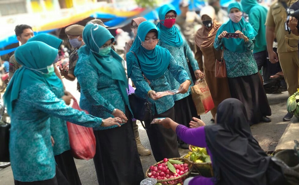 Selain mengeluarkan bimbauan dan penyemprotan disinfektan di lingkungan pasar, TP-PKK juga terjun langsung ke lingkungan pasar untuk mensosialisasikan kepada masyarakat betapa bahayanya covid-19.