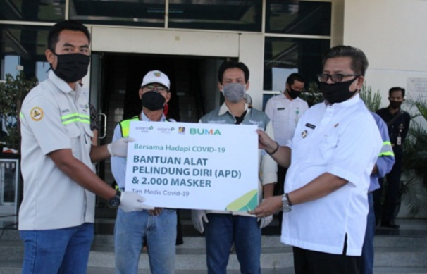 suara banua news- PARINGIN, – PT. Adaro Indonesia bersama BRI cabang Amuntai, berikan bantuan Alat Pelindung Diri atau APD, masker serta sabun antiseptik kepada Pemerintah Kabupaten Balangan,