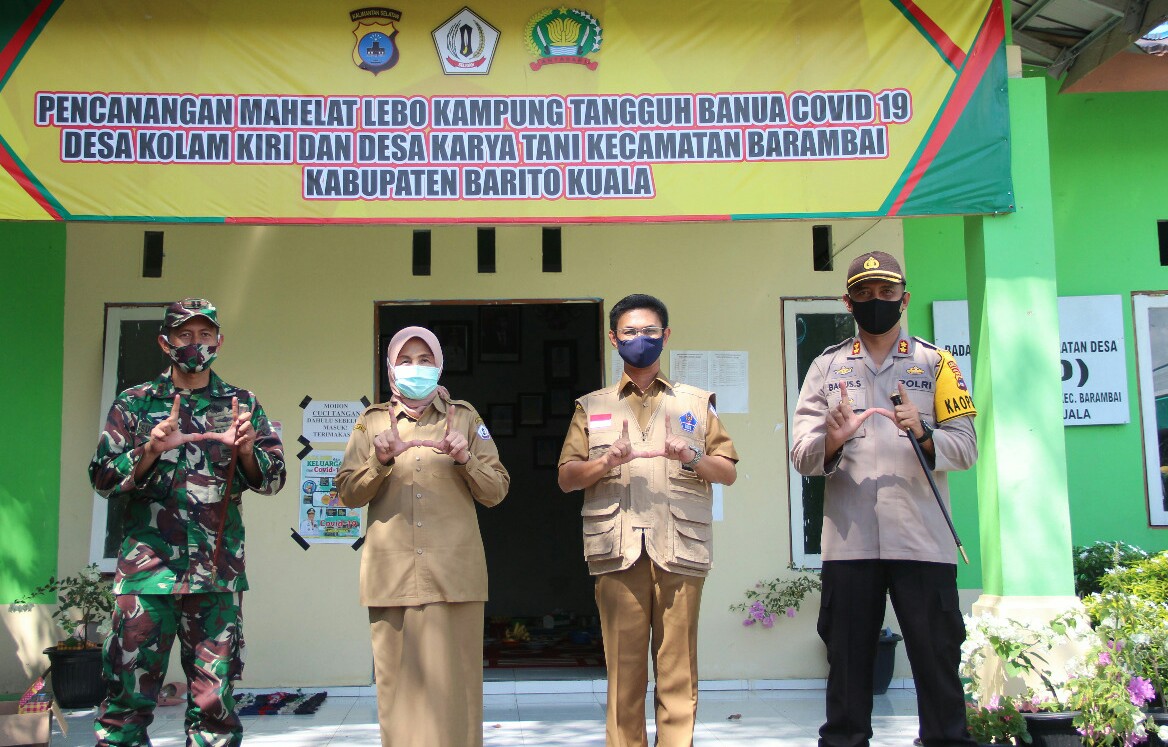 suara banua news-MARABAHAN, Polres Barito Kuala mengenalkan pembentukan Mahelat Lebo Kampung Tangguh Banua Covid-19, guna memutus mata rantai persebaran Covid-19. Dari ratusan desa termasuk kelurahan, Desa Kolam Kiri dan Desa Karya Tani di Kecamatan Barambai terpilih menjadi percontohan.