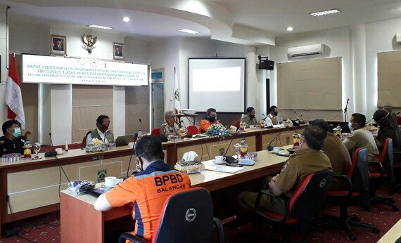 suara banua news-BALANGAN, Tim Gugus Tugas Covid- 19 Provinsi Kalimantan Selatan bersama Gugus Tugas Kabupaten Balangan, melakukan rapat koordinasi, terkait tracing dan tracking di aula Benteng Tundakan Balangan, Selasa (16/06/2020).