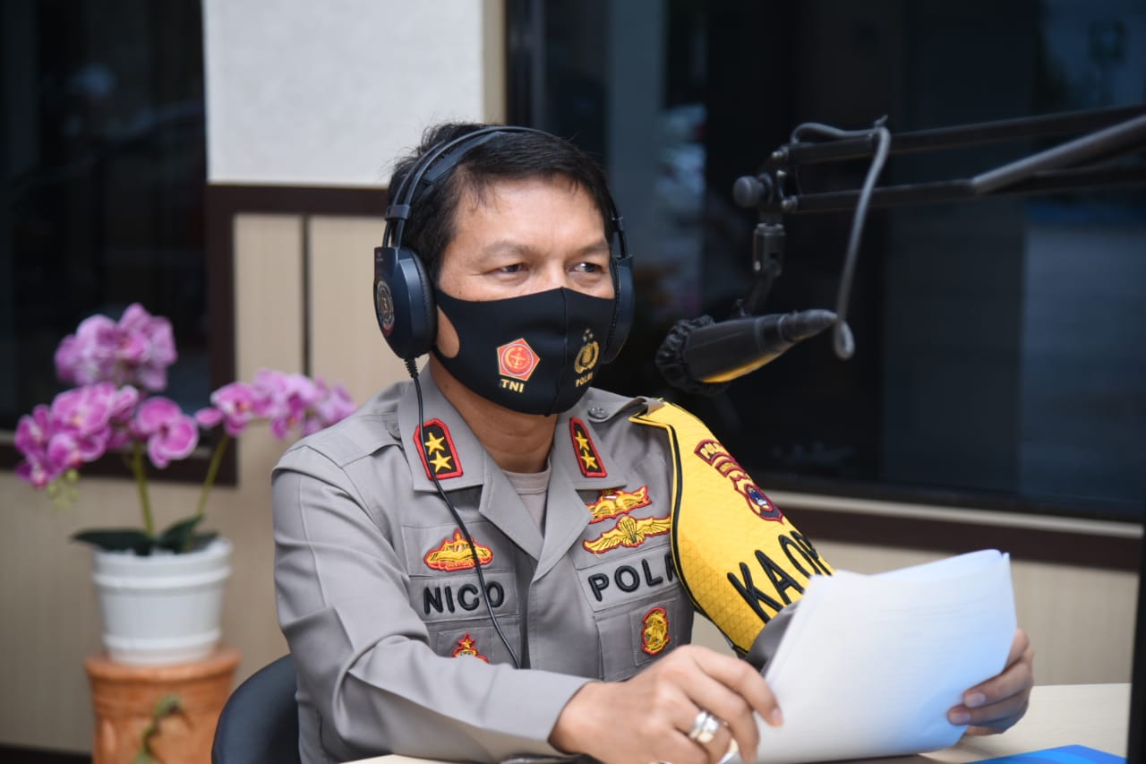 Kapolda Kalsel mengimbau kepada para pendengar setia RRI Banjarmasin agar mematuhi protokol kesehatan Covid-19 karena hal tersebut menjadi kunci utama dalam mencegah dan memutus mata rantai penyebaran Covid-19 di Kalimantan Selatan.