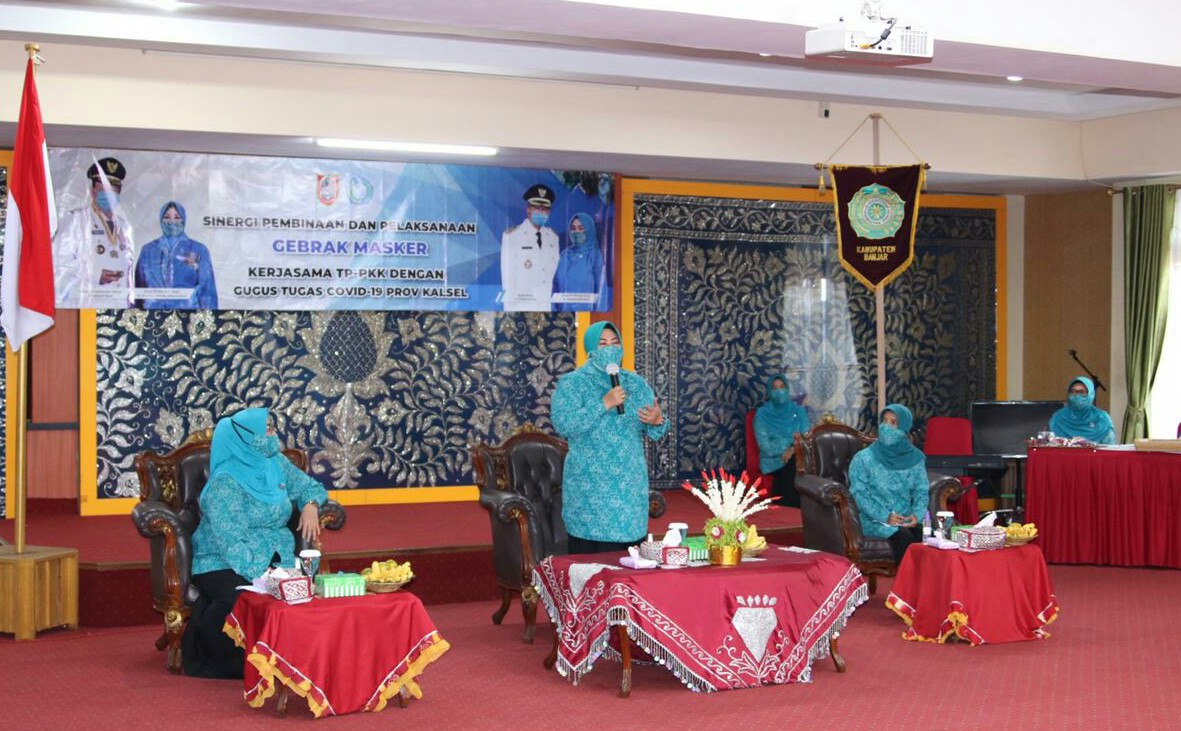 Dalam kesempatan itu Ketua TP.PKK Provinsi Kalimantan Selatan ini, mengapresiasi atas kinerja program PKK di Kabupaten Banjar sebagai mitra pemerintah dalam mendukung pembangunan daerah, khususnya program Gebrak Masker pada masa pandemi covid-19 sekarang ini.
