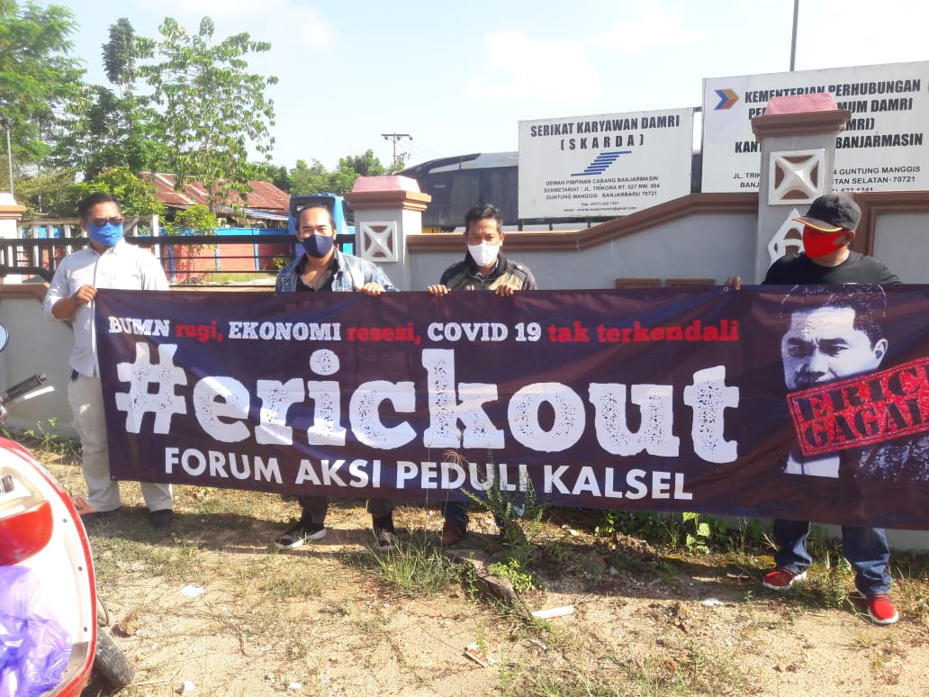 suara banua news -BANJARBARU, Forum Peduli Kalsel (FPK) menilai Menteri BUMN Erick Thohir, selaku Ketua Pelaksana Komite Pemulihan Ekonomi Nasional serta Penanganan Covid 19 telah gagal.