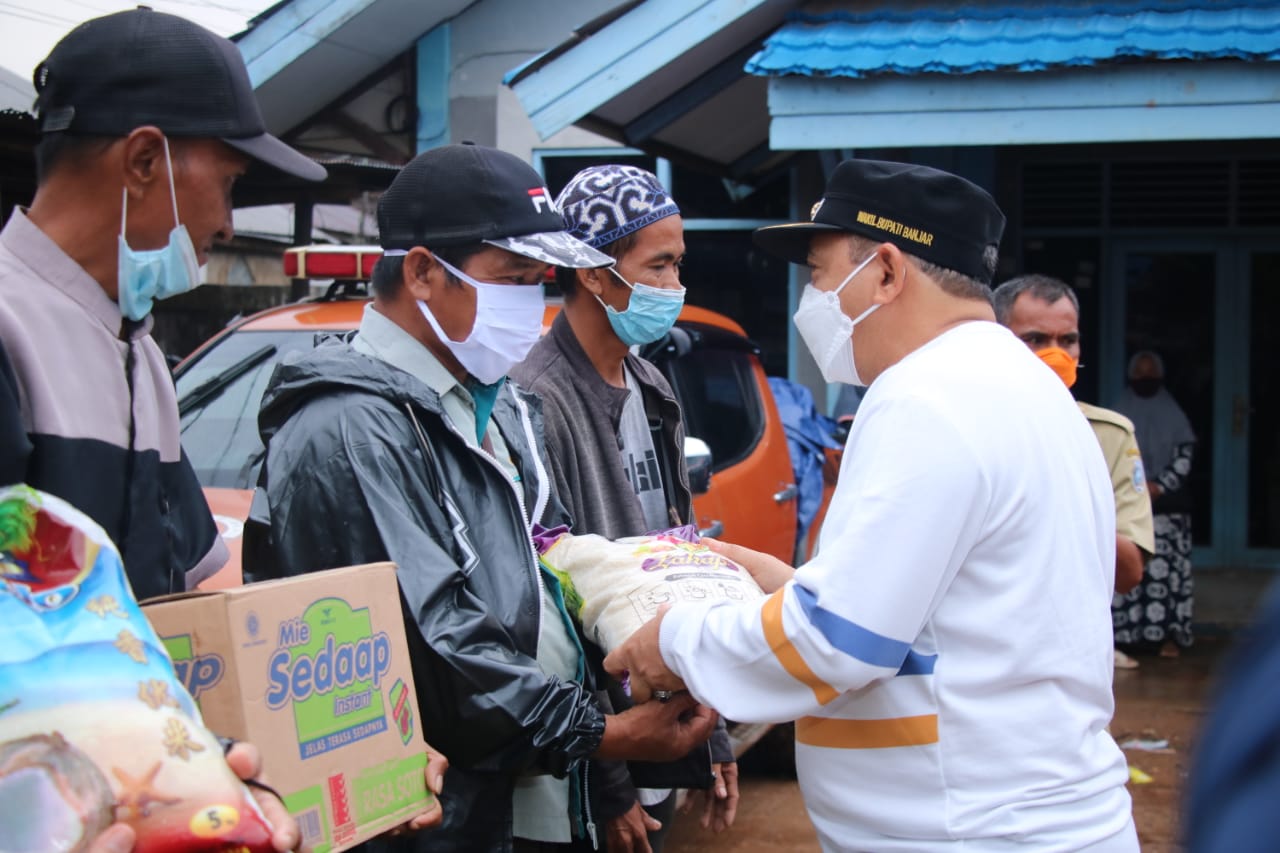 BANTUAN diserahkan secara simbolis oleh Wakil Bupati Banjar H. Said Idrus Al Habsyie kepada perwakilan warga RT 22, 23, 24 dan 25 Kelurahan Keraton.