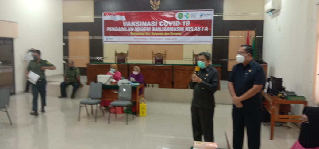 suara banua news – BANJARMASIN, Pengadilan Negeri Banjarmasin dan jajarannya mengikuti vaksinasi covid 19, Selasa (6/4/2021). Kegiatan vaksinasi ini berlangsung di ruang aula lantai II PN Banjarmasin dan langsung diikuti Ketua PN Moch. Yuli Hadi SH MH dan Wakil Ketua PN A.Bondan SH MH serta seluruh hakim beserta seluruh karyawan di Pengadilan Negeri Banjarmasin.