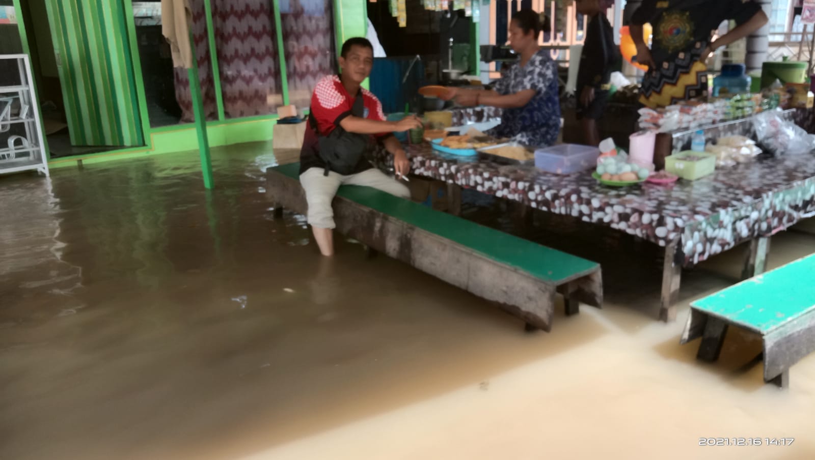 KETINGGIAN air, di desa ini masih mencapai 50 centimeter, membuat sebagian warganya membuat ” para para” untuk menaruh barang miliknya agar tidak terendam air.