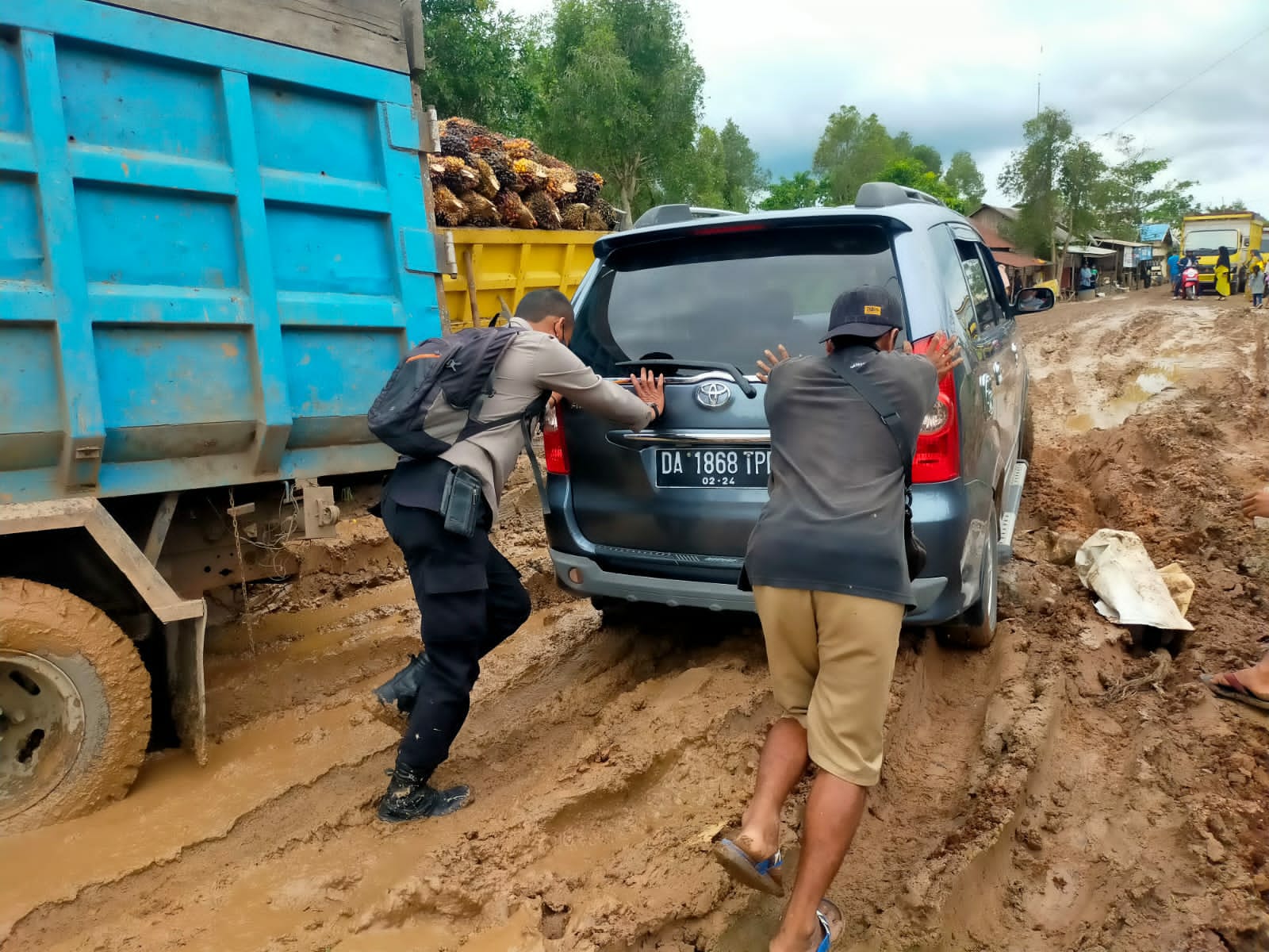 “Dengan sigap saya beserta anggota tidak segan -segan ikut mendorong satu per satu mobil yang akan melintas walaupun berada dalam tempat yang berlumpur,” tuturnya.
