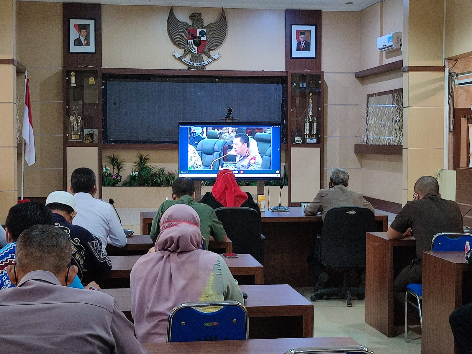 suara banua news -MARTAPURA, Sejumlah kepala dinas dilingkup Pemkab Banjar mengikuti Video Conference rapat koordinasi lintas sektoral bidang operasional tahun 2022, bersama Kapolri Jenderal Listyo Sigit Prabowo dan sejumlah Menteri di Aula Tri Brata Polres Banjar, Kamis (14/4/2022).