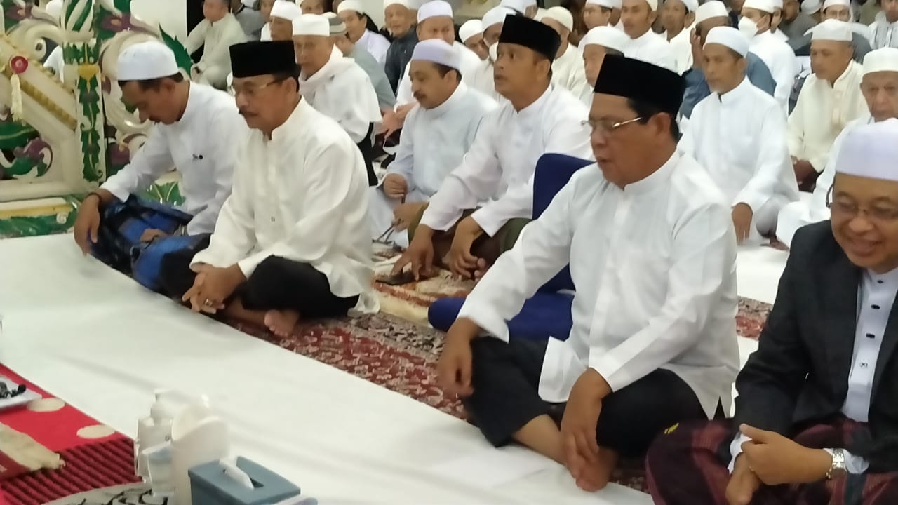 SELAIN Saidi Mansyur, Wakil Bupati Banjar Habib Idrus Al Habsyie juga sholat Idul Adha di Al Karomah diikuti Forkopimda Kabupaten Banjar.