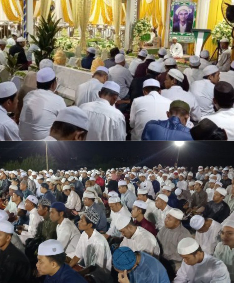 suara banua news-MARTAPURA, Ribuan kaum muslimin yang dari berbagai pelosok di Kabupaten Banjar mengikuti acara haulan ke 44 KH. Salim Ma’ruf di kompleks pemakaman Desa Pekauman Dalam Martapura Timur Kabupaten Banjar Selasa Malam, 27 September 2022.
