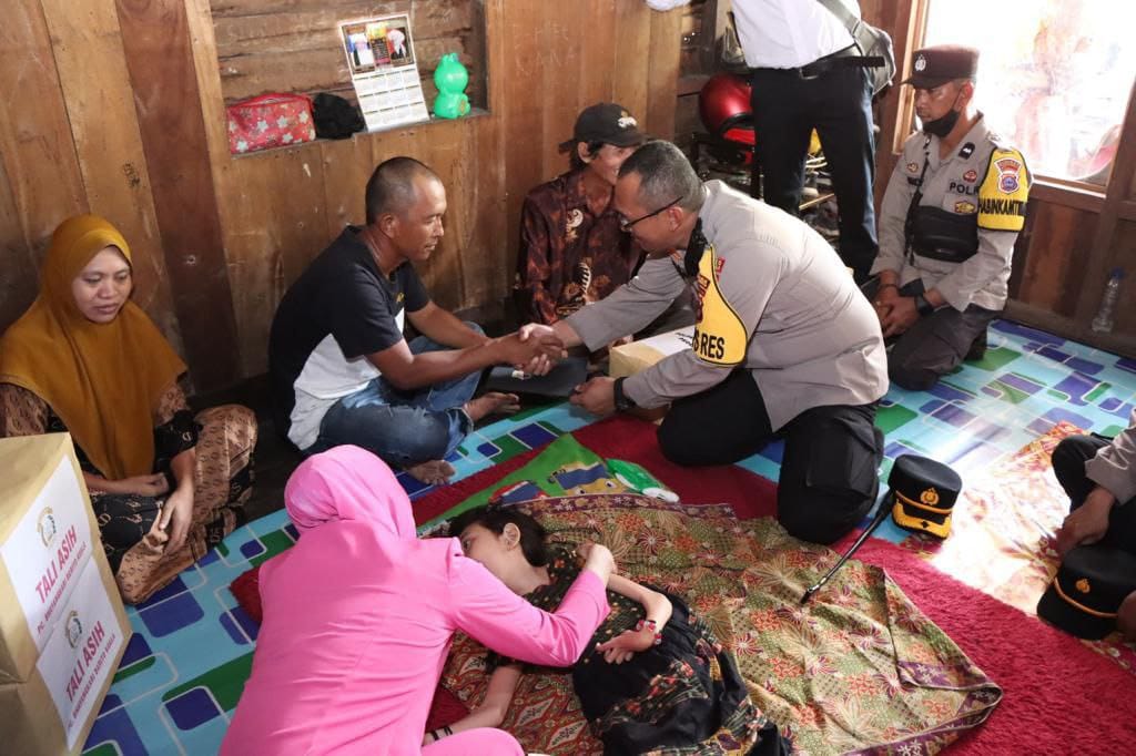 suara banua news – BATOLA, Munawarah 13 tahun, remaja penderita kelumpuhan otak (cerebral palsy) mendapat kunjungan dari Kapolres Barito Kuala (Batola) AKBP Diaz Sasongko.