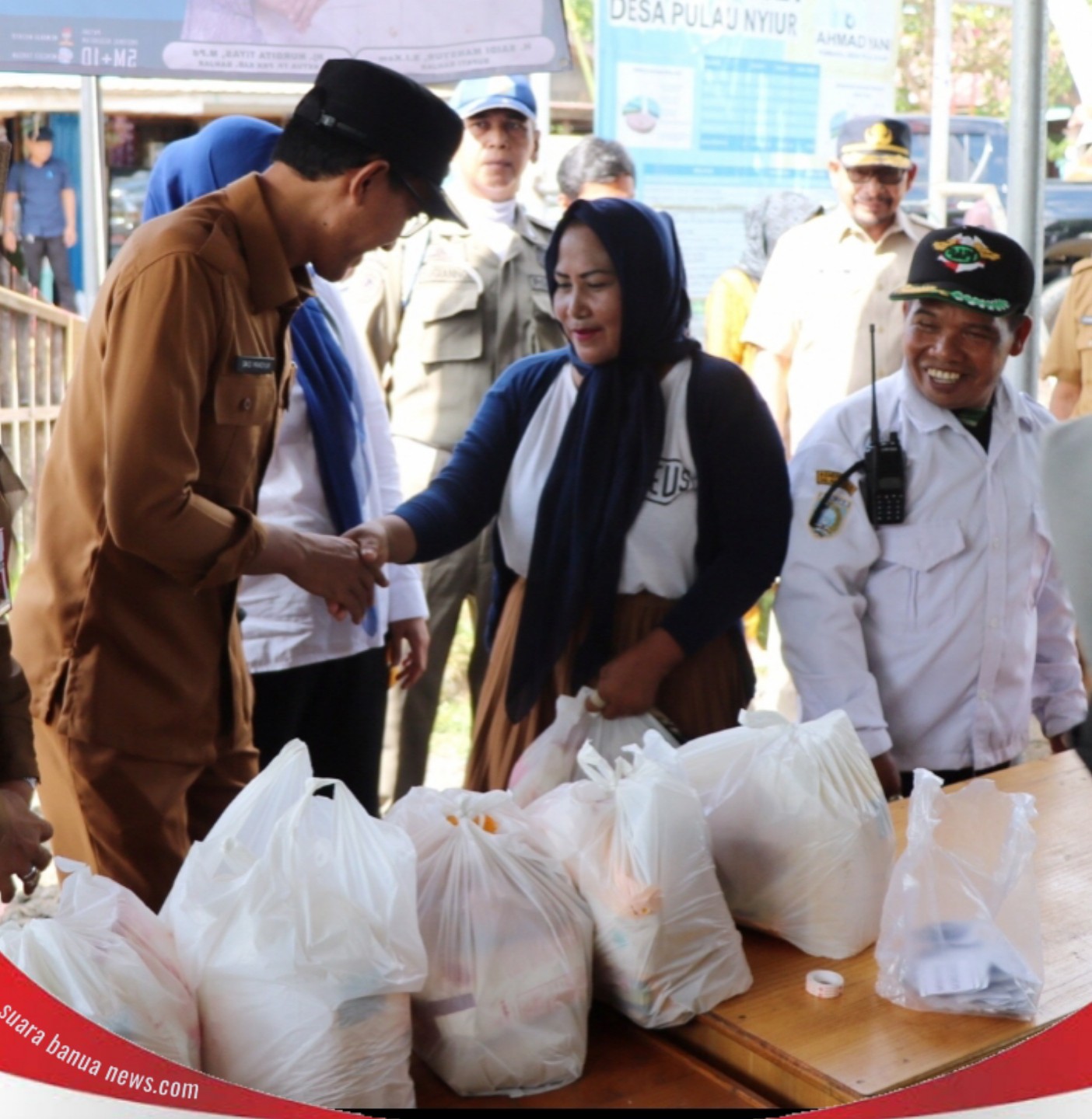 suara banua news – MARTAPURA, Pemerintah Kabupaten Banjar menggelar pasar murah di Desa Pulau Nyiur Kecamatan Karang Intan. Sedikitnya 200 paket sembako yang berisikan minyak goreng, beras dan jenis kebutuhan pokok lainya senilai Rp. 68.000,- di jual di pasar murah ini.