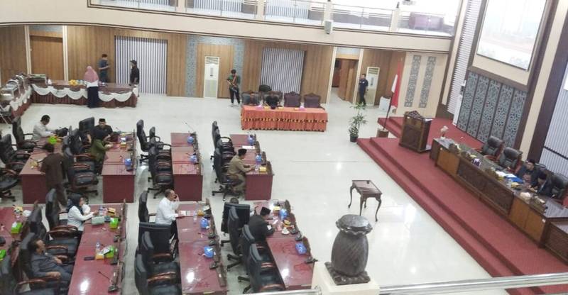 “Izin pimpinan, bahwa berdasarkan Tata Tertib (Tatib) DPRD, rapat paripurna tentang pengambilan keputusan terhadap raperda tidak dapat dilanjutkan atau di wakilkan, tanpa kehadiran Bupati,” jelas Kamaruzzaman.