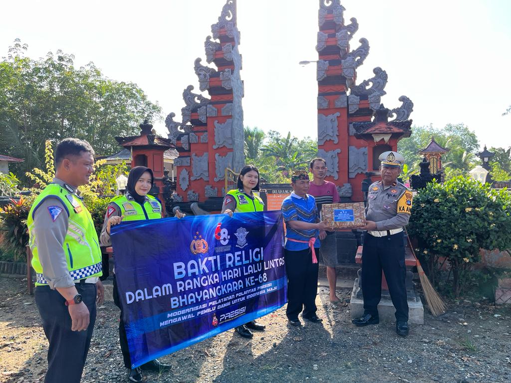 suara banua news – BATOLA, Sat Lantas Pòlres Batola melaksanakan kegiatan bakti religi dalam rangka Hari Lalu Lintas Bhayangkara ke 68 Polres Batola, Jum’at 8 September 2023, dan berlangsung di Mesjid Istiqomah Kecamatan Marabahan dan Pura Jagat Natha Widya Natha Kecamatan Barambai.