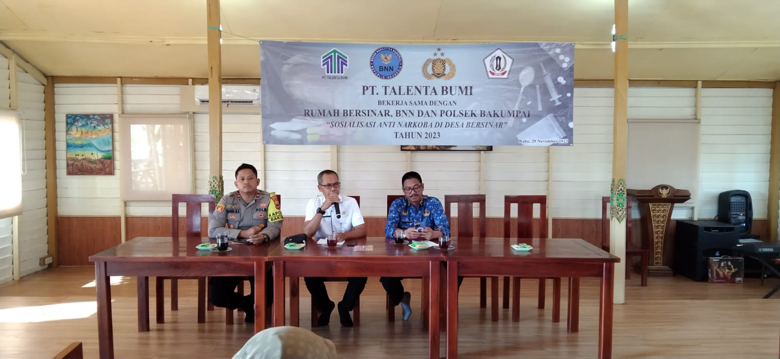 PT.Talenta Bumi bekerjasama dengan Rumah Bersinar dan BNN serta Polsek Bakumpai, sosialisasikan gerakan anti narkoba di Desa Bersinar diruang Meeting Room BBC Jalan Bahaudin Musa Kecamamatan Marabahan Kabupaten Barito Kuala, Rabu, 29 November 2023.