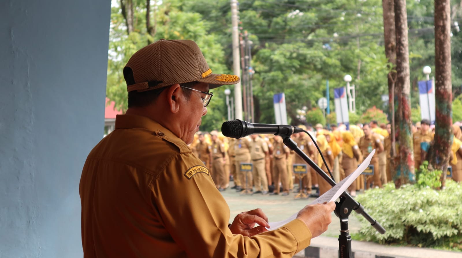suara, banua news- MARTAPURA, Asisten Perekonomian dan Pembangunan Pemkab Banjar Ikhwansyah, memimpin apel kerja gabungan ASN di lingkup Pemerintah Kabupaten Banjar, Senin 4 December 2023 di halaman Kantor Bupati Banjar.