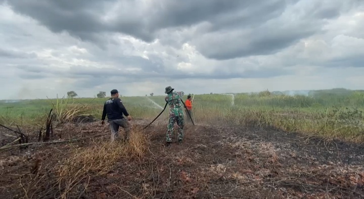 suara banua news- BANJAR, Memasuki musim kemarau (kemarau basah), kebakaran hutan dan lahan atau karhutla terjadi di Desa Sungai Batang Martapura Kabupaten Banjar.