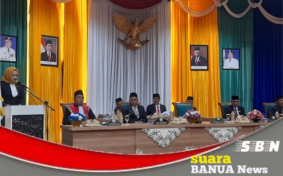 KETUA DPRD Batola Ayu Dian Liliana Sari Wiryono, didampingi wakil ketua masing- making Harmuni dan Bahriannoor, memimpin rapat paripurna di gedung DPRD Batola di Marabahan, Rabu 2 Oktober 2024, sore.