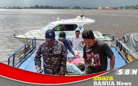 Dalam upaya cepat, pasien tersebut dievakuasi menggunakan kapal speed milik Puskesmas Desa Tabunganen, melintasi sungai menuju Posbinpotmar Trisakti Lanal Banjarmasin.