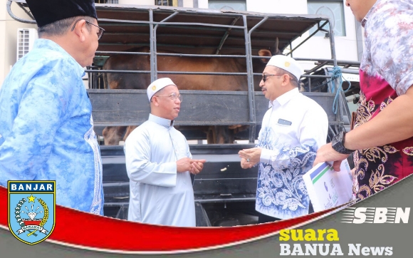suara banua news- BANJAR, Pemerintah Daerah Kabupaten Banjar dan Bank Kalsel menyerahkan bantuan sebanyak 2 ekor sapi, masing masing kepada dapur umum Sekumpul dan Masjid Syi’arus Sholihin Martapura.