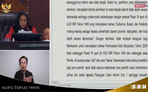suara banua news- JAKARTA, Mahkamah Konstitusi (MK) membatalkan Keputusan KPU Kota Banjarbaru Nomor 191 tahun 2024 tentang Penetapan Hasil Pemilihan Walikota dan Wakil Walikota Banjarbaru Tahun 2024 dan memerintahkan KPU Banjarbaru untuk melaksanakan Pemungutan Suara Ulang (PSU) di seluruh Tempat Pemungutan Suara (TPS) Kota Banjarbaru.