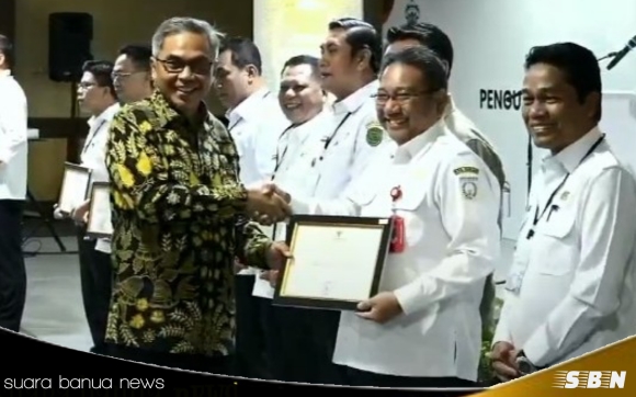 PENGHARGAAN diserahkan Ketua KPK RI, Setyo Budiyanto, kepada Bupati Banjar H Saidi Mansyur diwakili Setdakab Banjar HM Hilman, saat rapat koordinasi penguatan kepala daerah bebas Korupsi, di Jogja Expo Center, Jogyakarta, Rabu 19 Maret 2025.