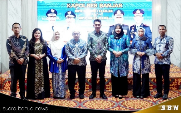 suara banua news – MARTAPURA, Bupati Kabupaten Banjar H. Saidi Mansyur dan Ketua TP PKK Kabupaten Banjar Hj. Nurgita Tiyas, menghadiri acara pisah sambut Kapolres Banjar dari AKBP M Ifan Hariyat kepada AKBP Dr Fadli, yang berlangsung di Mahligai Sultan Adam Martapura, Rabu 9 April 2025.