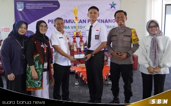 suara banua newa- MARTAPURA, M Zaidan Antariksa, siswa SMAN Banua Provinsi Kalimantan Selatan, keluar sebagai juara pertama dalam lomba video konten literasi tingkat Sekolah Menengah Atas (SMA) sederajat se-Kabupaten Banjar yang digelar Dinas Perpustakaan dan Kearsipan (Dispersip) Kabupaten Banjar.