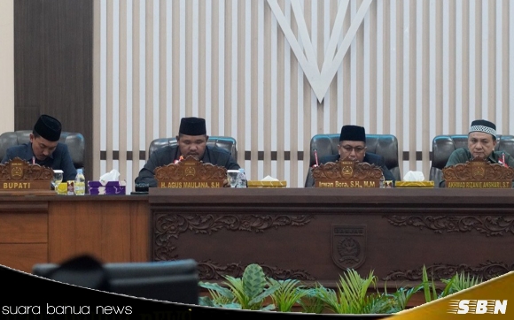 suara banua news- MARTAPURA, Bupati Banjar, Saidi Mansyur, memberikan tanggapan positif terhadap pemandangan umum Fraksi-Fraksi Dewan Perwakilan Rakyat Daerah (DPRD) Kabupaten Banjar terkait tiga Rancangan Peraturan Daerah (Raperda) dalam Rapat Paripurna di Gedung DPRD Banjar, Kamis 8 Mei 2025.