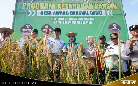 suara banua news – BANJAR, Desa Awang Bangkal Barat, Kecamatan Karang Intan, Kabupaten Banjar, berhasil menggelar panen raya padi di lahan pegunungan seluas 7 hektare.