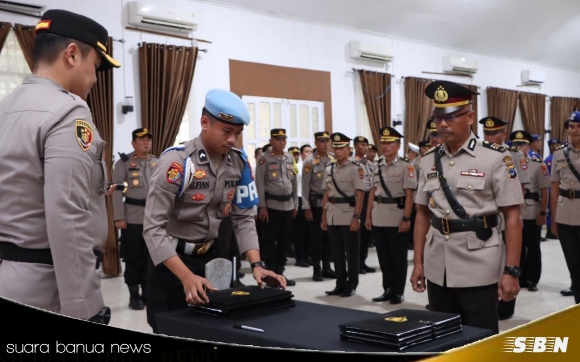 Kapolres Batola, AKBP Anib Bastian, menyampaikan apresiasi kepada pejabat lama atas dedikasi dan pengabdiannya dalam menjaga situasi Kamtibmas yang kondusif.