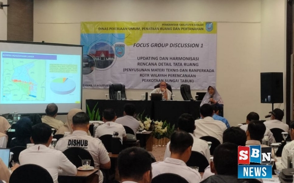 sbn-BANJARBARU – Pemerintah Kabupaten Banjar melalui Dinas Pekerjaan Umum, Penataan Ruang, dan Pertanahan (PUPRP) menggelar Forum Group Discussion (FGD) pertama penyusunan Rencana Detail Tata Ruang (RDTR) Kawasan Perkotaan Sungai Tabuk. Acara berlangsung di Hotel Novotel Airport, Banjarbaru.