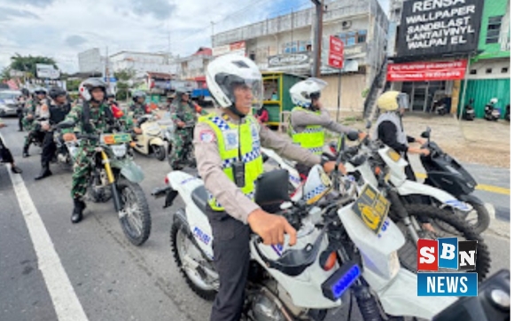 sbn- MARTAPURA,Untuk memastikan keamanan dan ketertiban tetap terjaga, TNI dan Polri menggelar patroli gabungan di berbagai wilayah strategis Kabupaten Banjar pada Senin 1 September 2025
