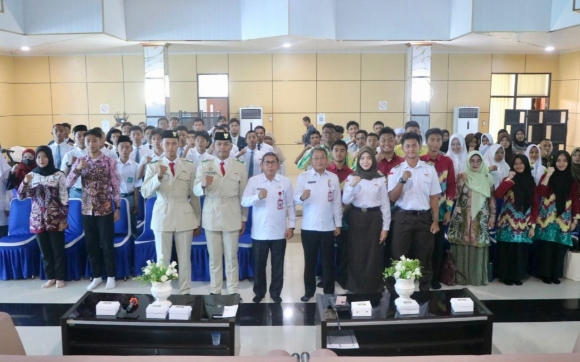 Para pelajar mendapatkan materi pembekalan dari narasumber internal Bakesbangpol dan perwakilan dari Purna Paskibra Indonesia.