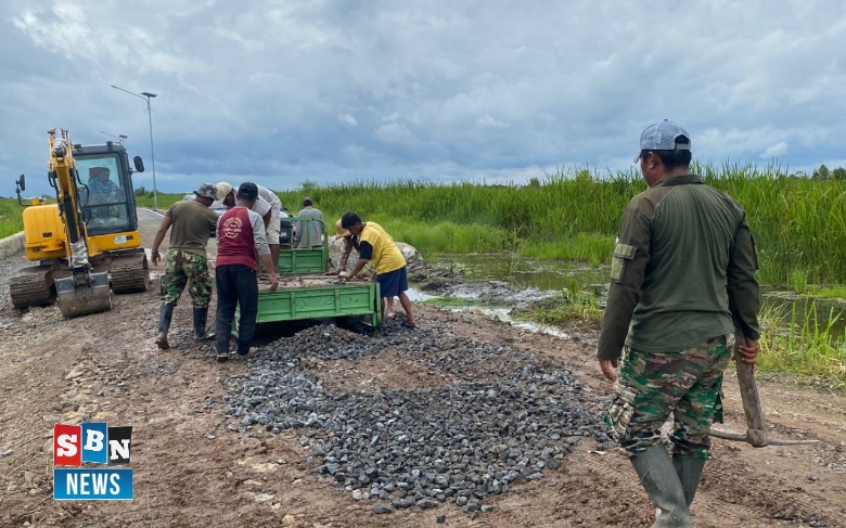 Peltu Haris Santo menjelaskan bahwa material yang digunakan dalam kegiatan ini berasal dari sumbangan sukarela berbagai pihak, termasuk pengusaha kelapa sawit dan masyarakat setempat.