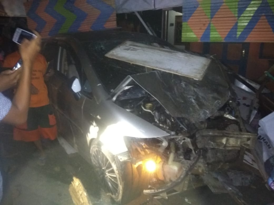 Tak sampai disitu, Honda City kembali melaju ke arah jln Bastun yang kemudian hilang kendali dan menabrak 2 buah warung milik H.Majedi dan H. Iyan.