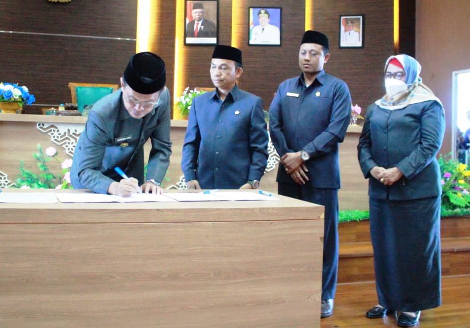 KESEPAKATAN ini tertuang dalam Nota Kesepakatan antara Bupati melalui Wakil Bupati H Rahmadian Noor dengan Ketua DPRD Saleh, yang berlangsung di ruang rapat paripurna di gedung DPRD Kabupaten Batola, Kamis 4 Agustus 2022.
