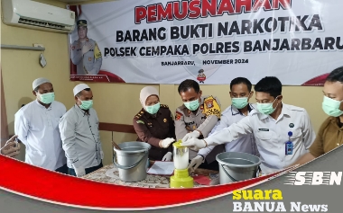 Pemusnahan barang bukti itu dipimpin langsung oleh Kapolsek Cempaka, IPTU Ketut Sedemen bersama Perwakilan dari Pengadilan Negeri Kota Banjarbaru, Kejaksaan Negeri Kota Banjarbaru, BNN Kota Banjarbaru dan Kanit Reskrim Polsek Cempaka, Ketua LKBH serta Tokoh Masyarakat setempat pada Senin 11 November 2024.