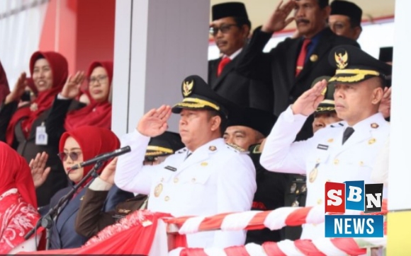 sbn- MARABAHAN, Bupati Barito Kuala (Batola), H. Bahrul Ilmi, menjadi inspektur upacara pada peringatan Detik-Detik Proklamasi Kemerdekaan Republik Indonesia ke-80 di Kabupaten Batola.