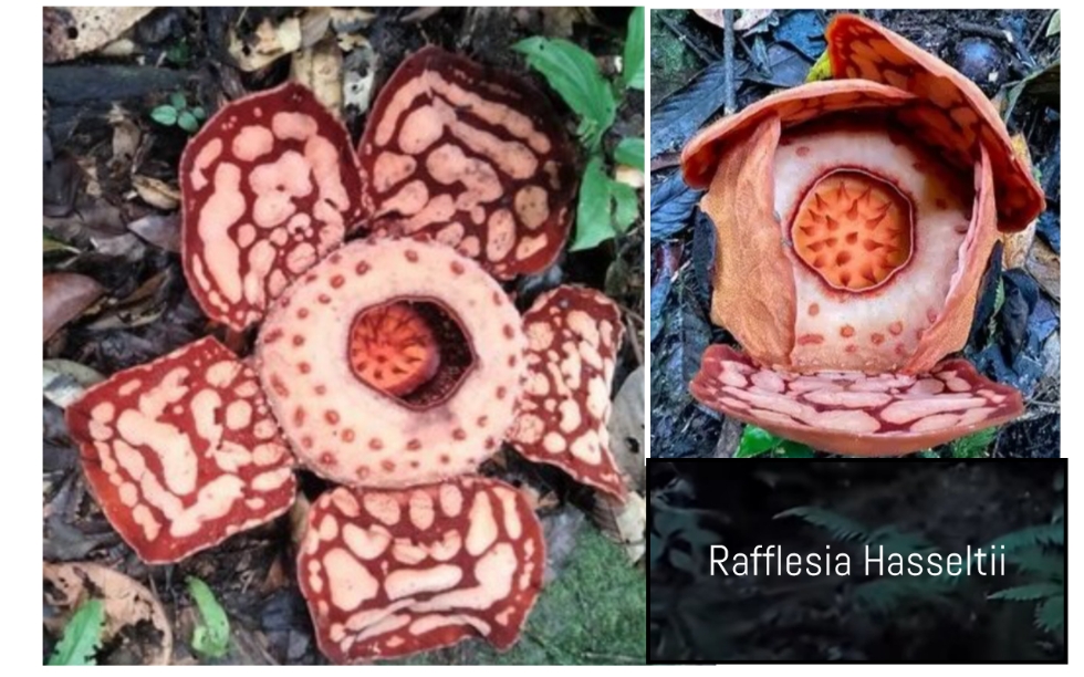 Rafflesia Hasseltii, yang dikenal dengan tenda bunga merah darah dan bintik putih bulat pada kelopaknya, adalah parasit obligat yang hanya hidup pada tanaman inang genus Tetrastigma.