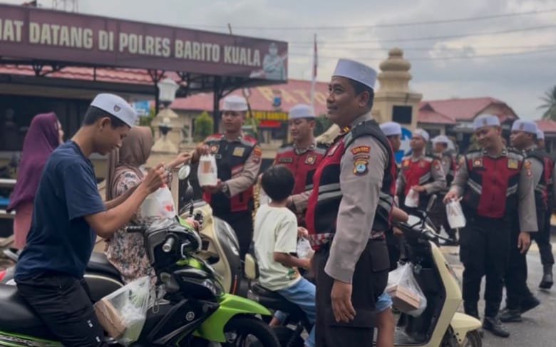 sbn-MARABAHAN, Satuan Samapta (Satsamapta) Polres Barito Kuala (Batola) menggelar pembagian takjil kepada masyarakat dalam rangka memperingati HUT ke-74 Korps Sabhara, Rabu (11/3/2026) sekitar pukul 17.00 WITA.
